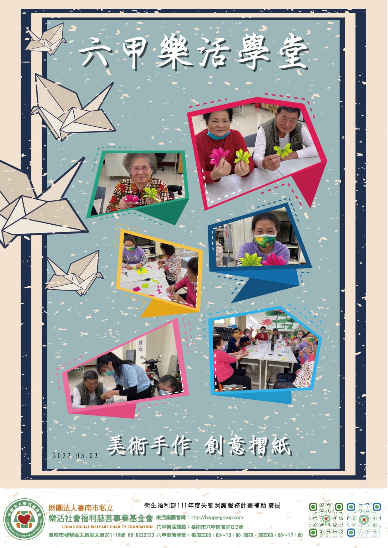 ⚡️六甲樂活學堂⚡️👐美術手作-創意摺紙👐🌼春暖花開的季節🌼動動手、剪裁、黏貼、完成今天也是美麗的一天🌼🌼有伴…