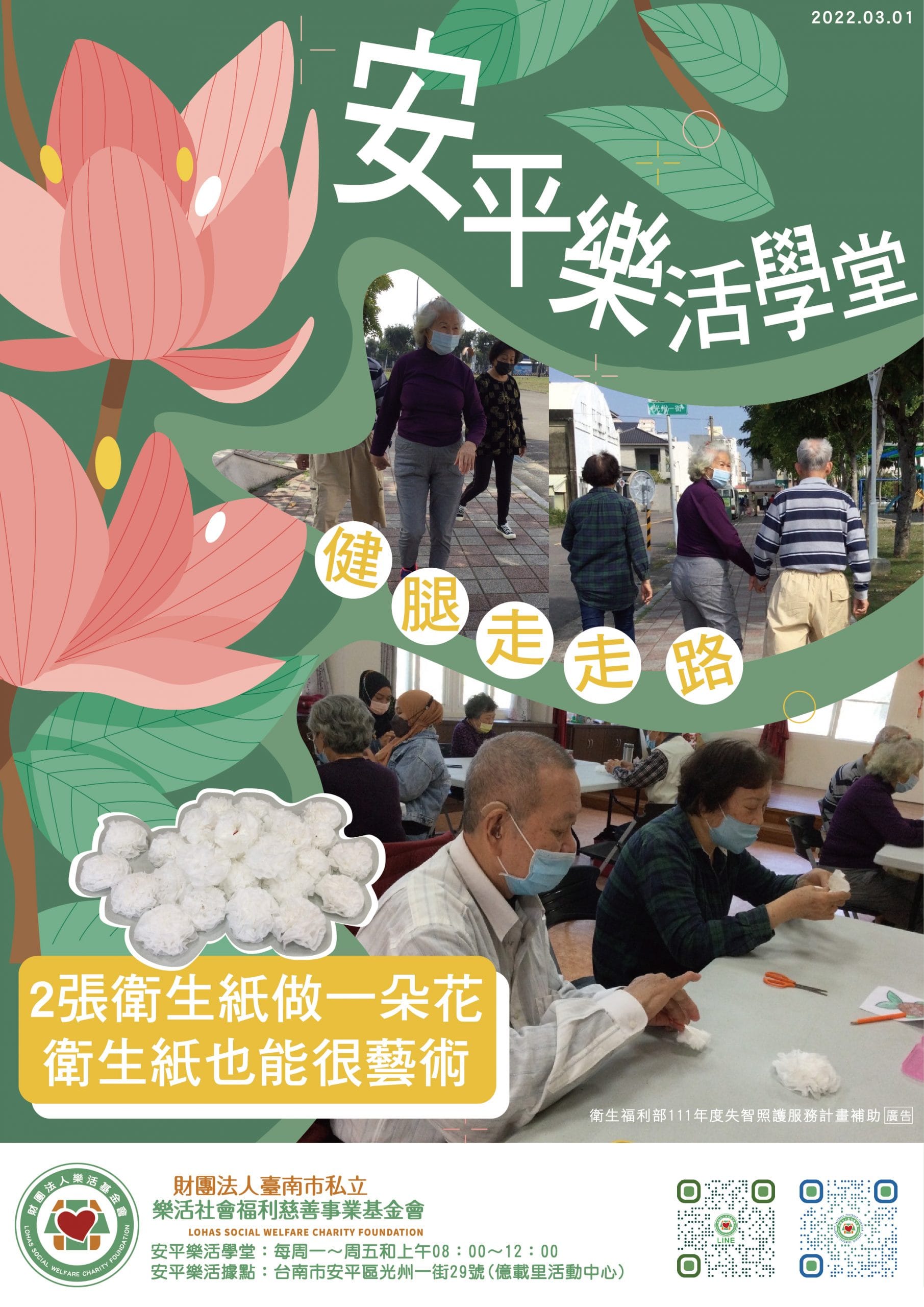 安平樂活學堂的億群好朋友 平凡無奇的衛生紙 卻能製作成美麗的花朵 藝術真的是太奇妙了 今天天氣很溫暖 帶領長輩…