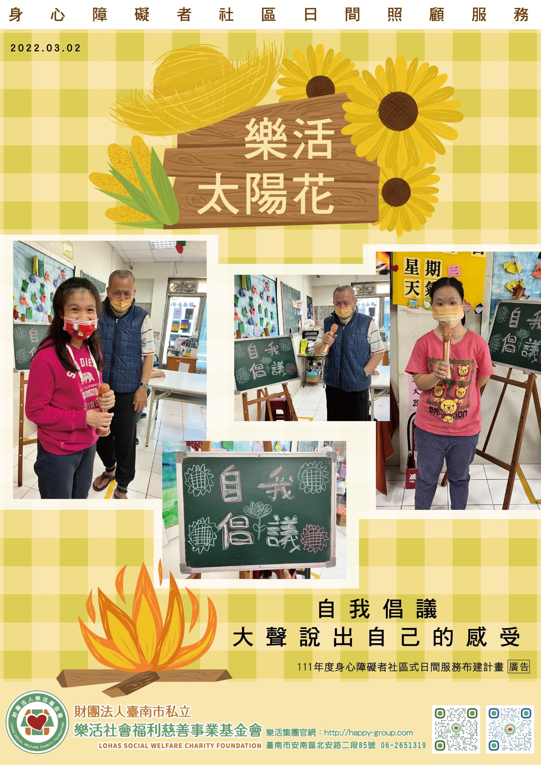 太陽花鼓勵青年們表達自己的意見,無論是對於活動參與的感想,或是近日的生活點滴,都可以大聲的說出來!而當聽眾的青…