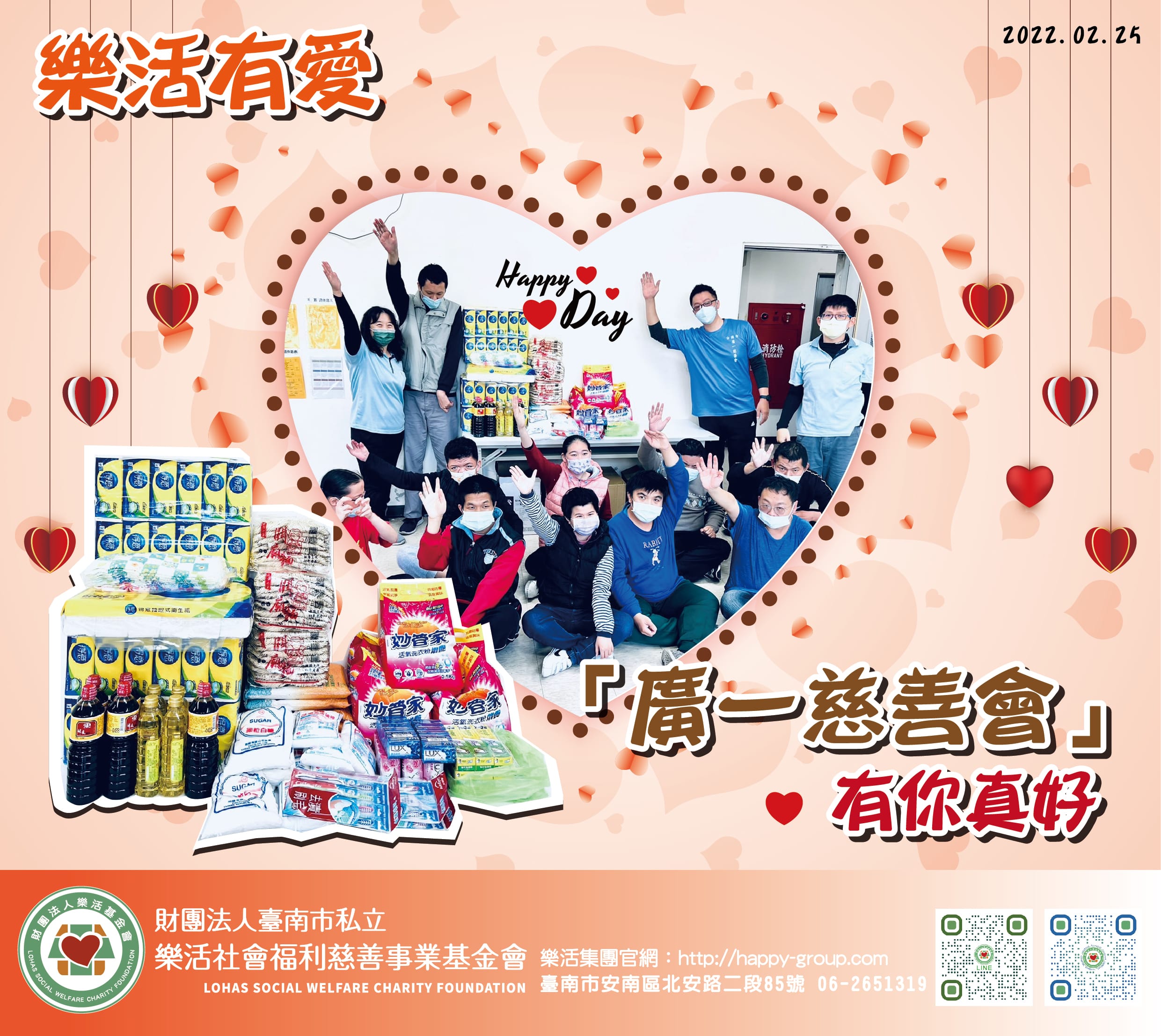 感謝「台南市廣一慈善會」 熱心公益 愛的分享 親送的溫度捐贈物資一批 支持樂活島小作 邀請你一起來樂活島 感受…