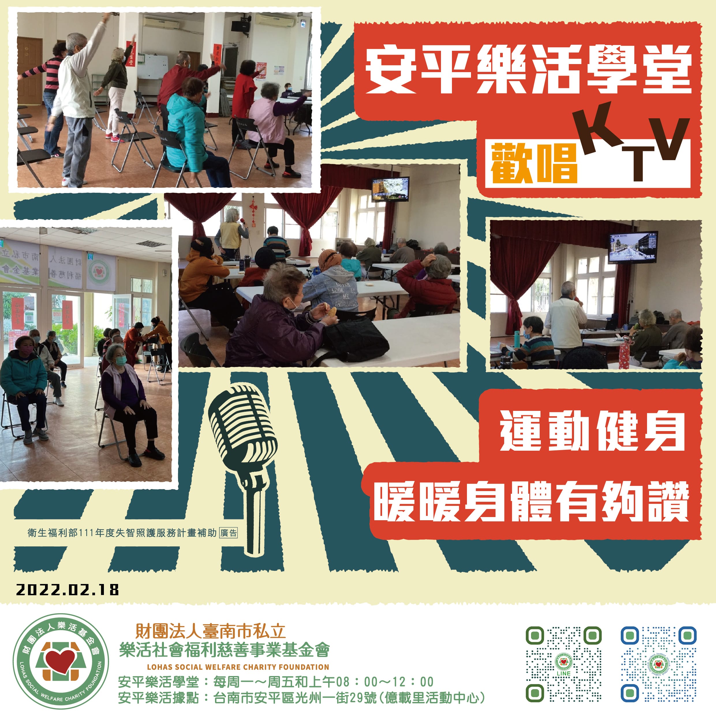 安平樂活學堂的億群好朋友 歡唱KTV 是懷舊系列當中大家最喜歡的活動 唱唱老歌緬懷曾經美好的回憶 天天運動身體…