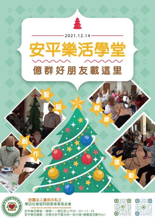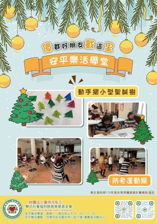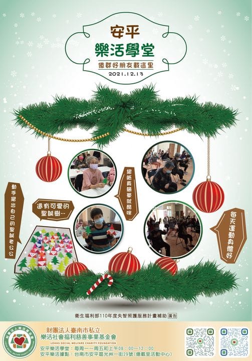 聖誕創作 大家藝術天分開啟 大型聖誕樹即將完成 健康運動真快樂 期待明天的活動 安平失智據點依COVID-19…