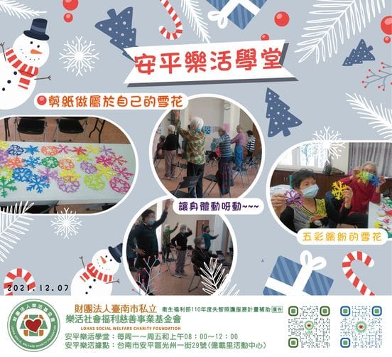 五顏六色的雪花 讓白色世界變得美麗了起來 透過剪刀的使用也訓練長者們的握力及視力運動對身體真的好 在運動的過程…