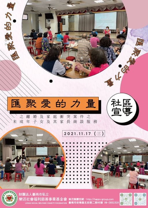 之離婚及家庭衝突案件之未成年子女及其家長商談服務 社區宣導開跑囉 原來很多人都不知道政府有這項服務 許多資訊都…