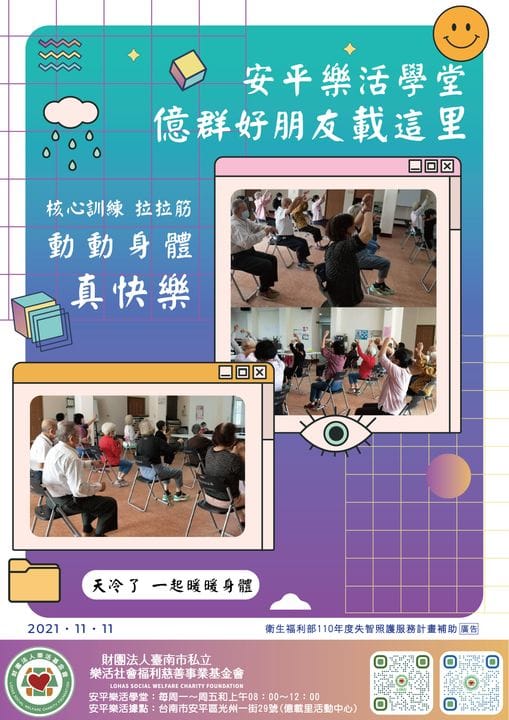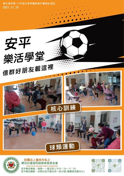 安平樂活學堂的億群好朋友 球類運動~快樂傳球 核心訓練~身體更健康 期待明天的活動 安平失智據點依COVID-…