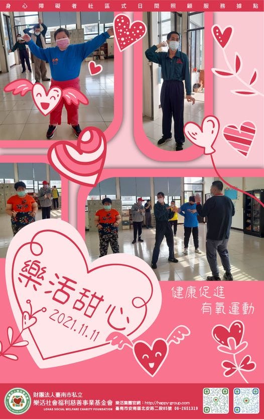 快樂動起來,為了健康我們要運動起來 每當播放到專屬歌曲時,某幾位服務對象都會跳得特別起勁,真的很可愛唷 新一代…
