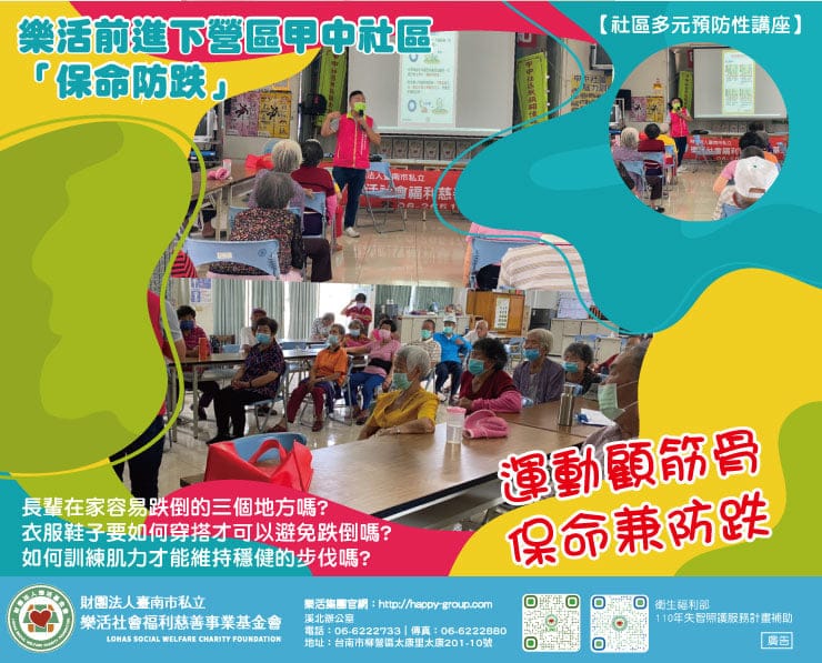 【社區多元預防性講座】樂活前進下營區甲中社區「保命防跌」 您知道 長輩在家容易跌倒的三個地方嗎? 您知道 衣服…