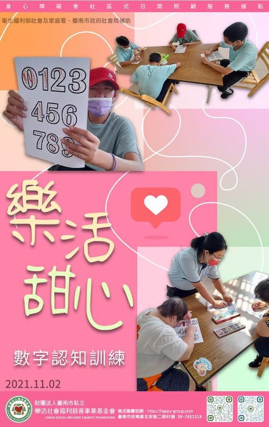 今天帶來什麼樣的活動呢? 原來是數字認識訓練,用愛心與耐心,認真一位位教導學員們, 看著學員們一步一步的完成0…