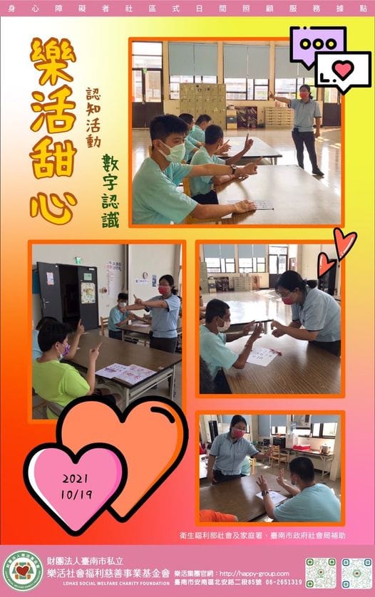 對於日常生活中常常運用的數字,讓樂活甜心的專業工作人員們帶領夥伴們認識數字, 比出數字的手勢,讓夥伴們學習與練…