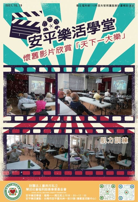 安平樂活學堂的億群好朋友 懷舊影片欣賞讓大家回味以前 維持肌力訓練使身體健康 期待明天的活動 安平失智據點依C…