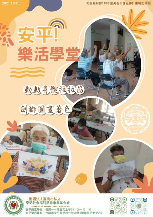安平樂活學堂的億群好朋友 動動筋骨 活著就是要動 畫畫著色 也讓大家對顏色更敏銳 創意無限期待下周的活動 安平…