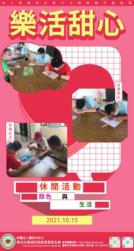 各種色彩的瑰麗,豐富了世界的色彩,休閒是為了更好的生活品質, 樂活的工作人員帶領夥伴們練習色彩運用,彩畫自己的…