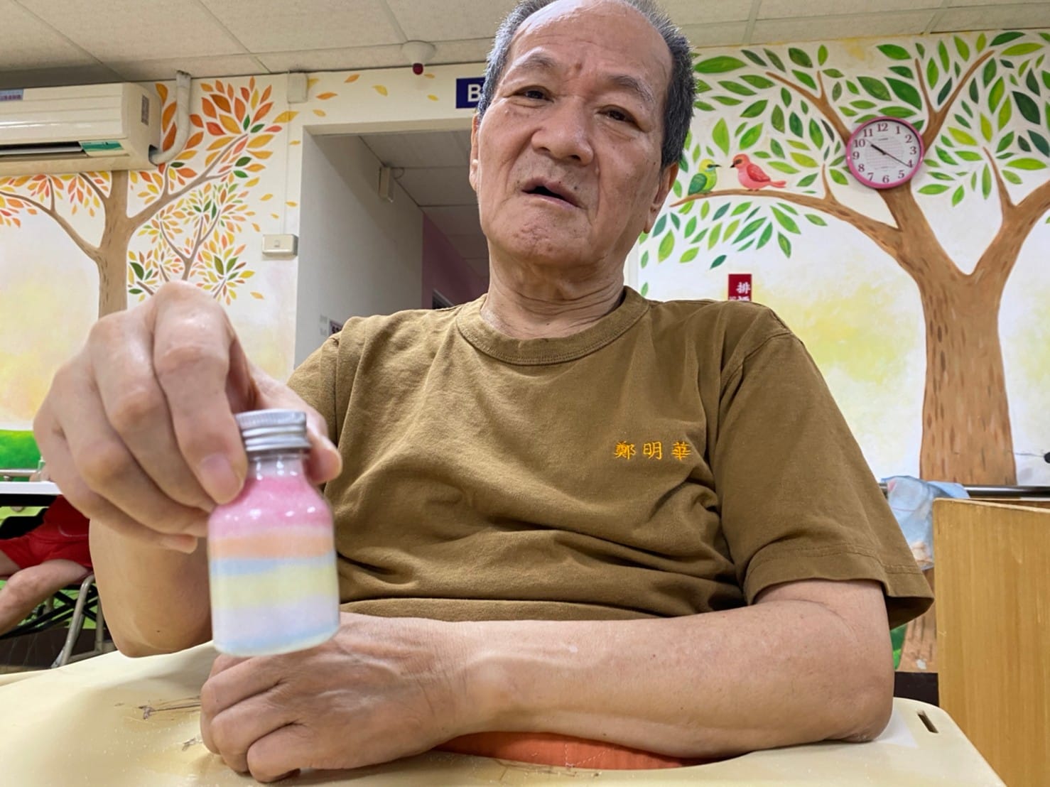 今天社工妹妹來教長輩做特別要東西美麗彩色的星砂瓶材料很簡單可以在家試試看喔材料有:瓶子、鹽巴、粉筆、杯子做法:…