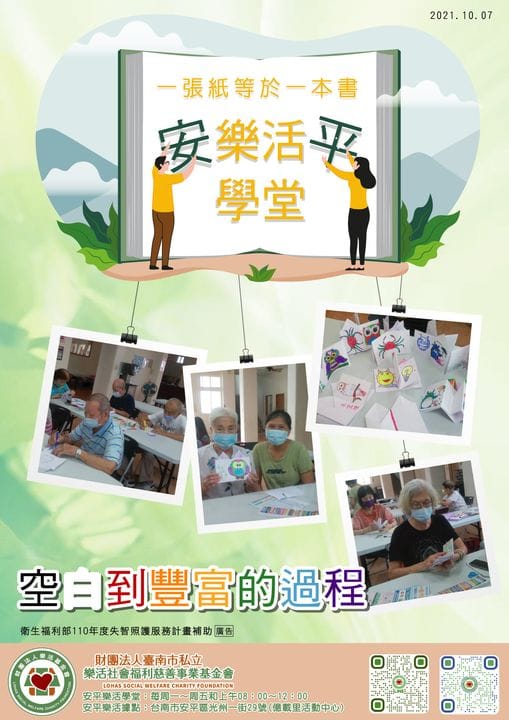 自己手工做屬於自己的書 一張紙卻有大大的呈現 期待明天的活動 安平失智據點依COVID-19防疫管理指引服務人…