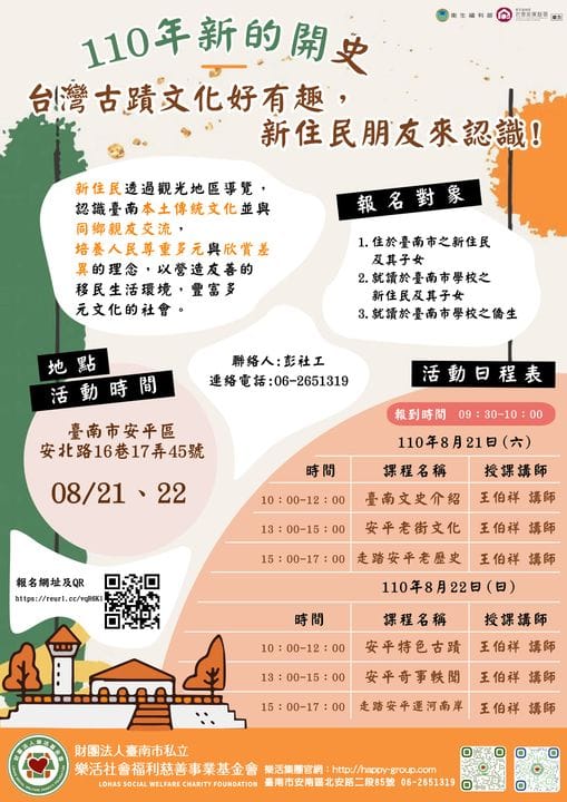 讓我們用屬於台南的人情味和古蹟傳統文化, 邀請新住民家庭認識蘊藏豐富且多元的文化之鄉, 並體驗美食之都的魅力,…