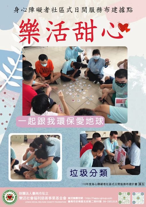 搶救地球大作戰 從樂活甜心布建做起 我們很努力的在為我們的地球做垃圾分類唷~ 每天午餐的骨頭、魚刺要分類到廚餘…