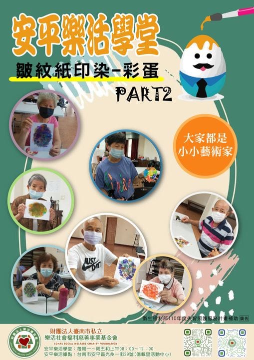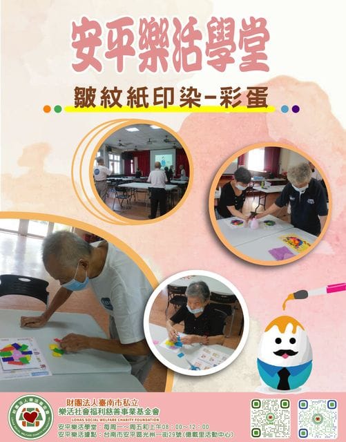創意拼貼 繽紛色彩 每個人都有屬於自己的創意彩蛋 激發好朋友們的創意思維期待明天的活動唷 安平失智據點依COV…