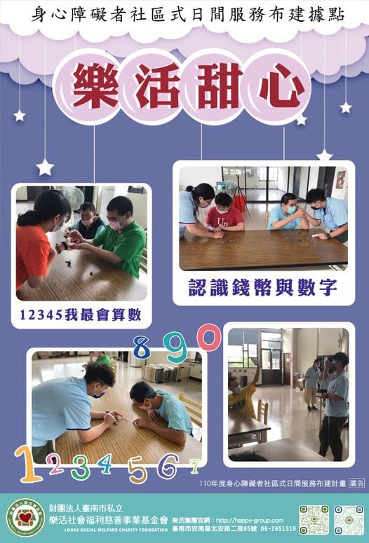 樂活甜心今日活動認識錢幣與數字 1 2 3 4 5大家一起來算數 1塊 5塊 10塊服務對象都很努力認識囉 期…