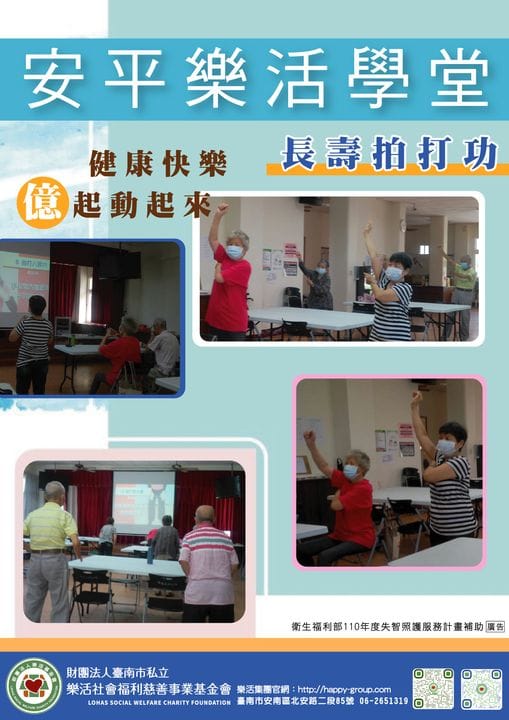 健康動起來 長壽拍打功 動動身體 讓心情更愉悅 期待明天的活動 安平失智據點依COVID-19防疫管理指引 服…