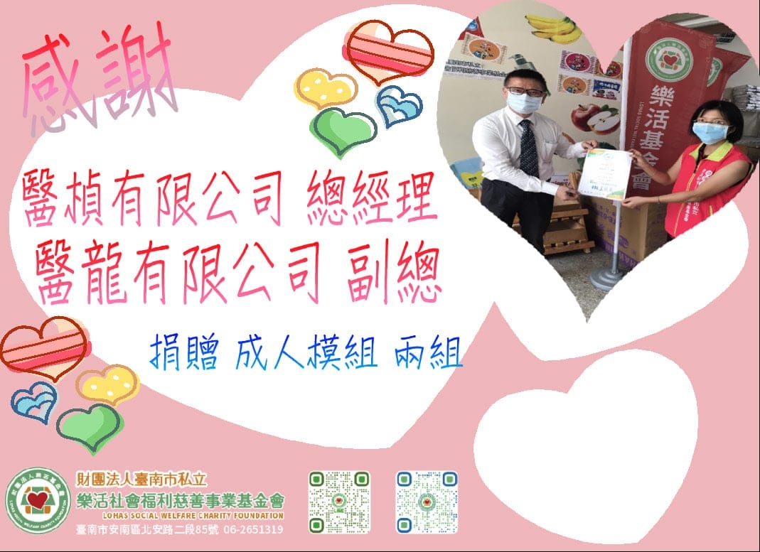 【樂活基金會】感謝醫楨有限公司、醫龍有限公司