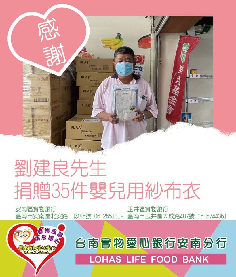 今天非常感謝劉建良先生愛心捐助35件嬰兒紗布衣 感謝社會大眾踴躍的捐贈,讓我們能向有需要的人伸出援手 歡迎民間…