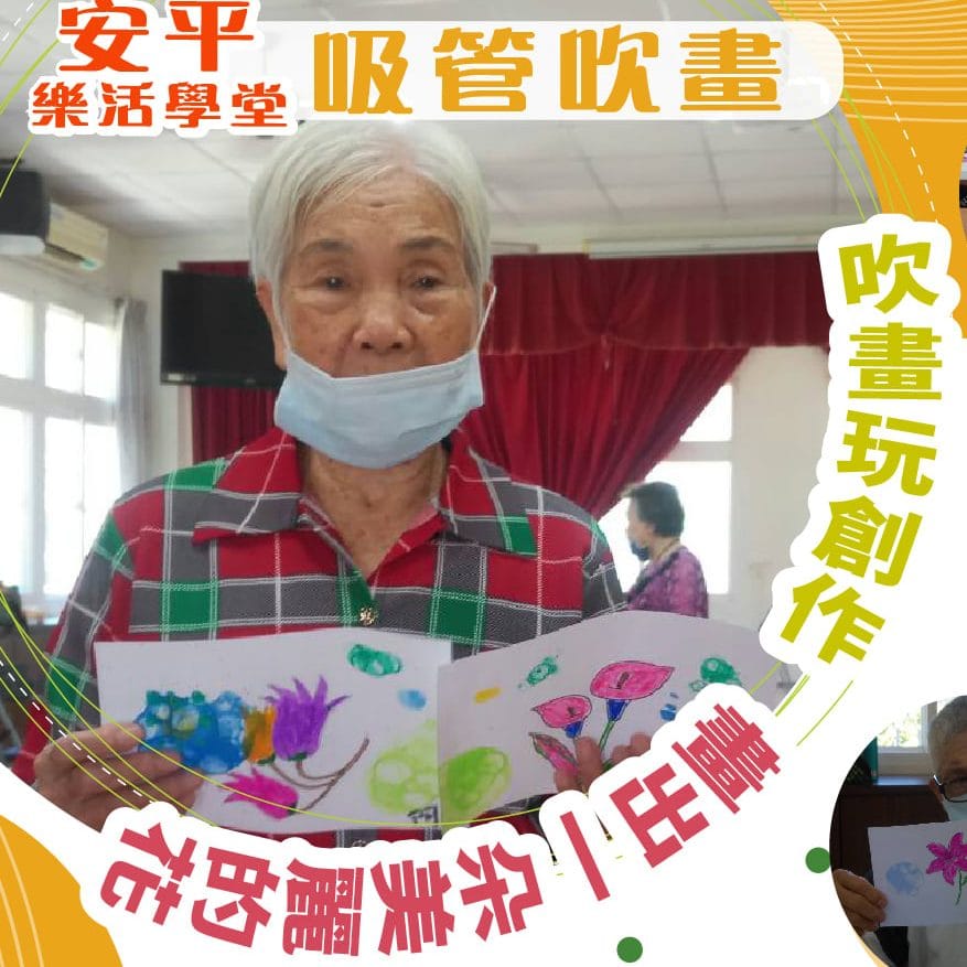 安平樂活學堂用吸管玩吹畫吹畫對樂活爺奶來說是新玩意兒 吹出濃密的大小泡泡在紙上形成不規則的圖案 大家互相指教各…