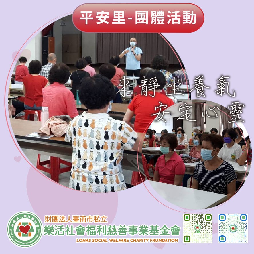 平安里-團體活動 爺奶來靜坐學氣功,安定心靈。 長輩們覺得很舒服也很放鬆。 隨著近日新增多起本土案例防疫生活依…