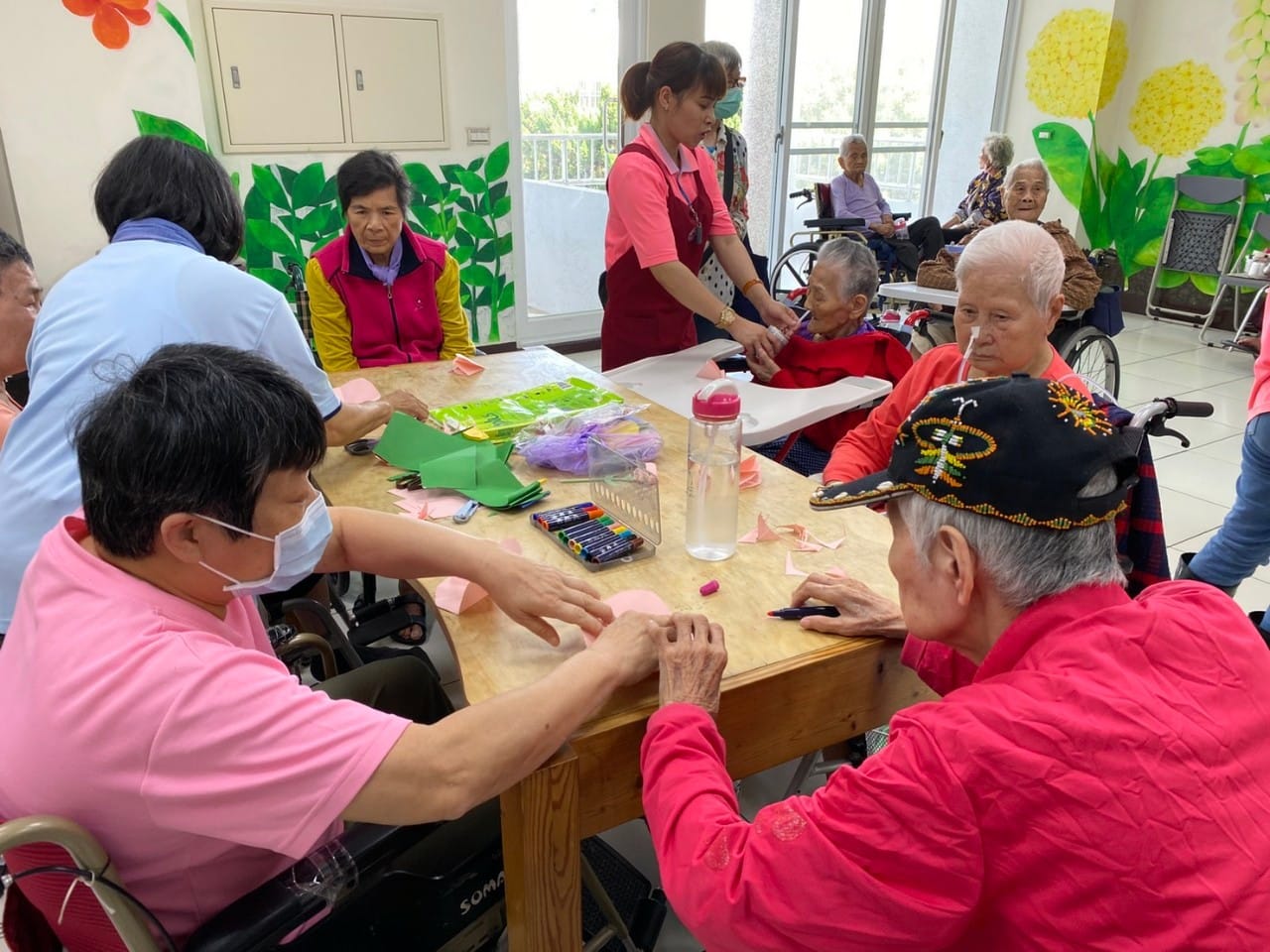安平樂活學堂今天很溫馨 四張皺紋紙+花藝鐵絲線 先摺扇子再用鐵絲固定 接著將皺紋紙一層一層的剝開塑形 一朵花的…