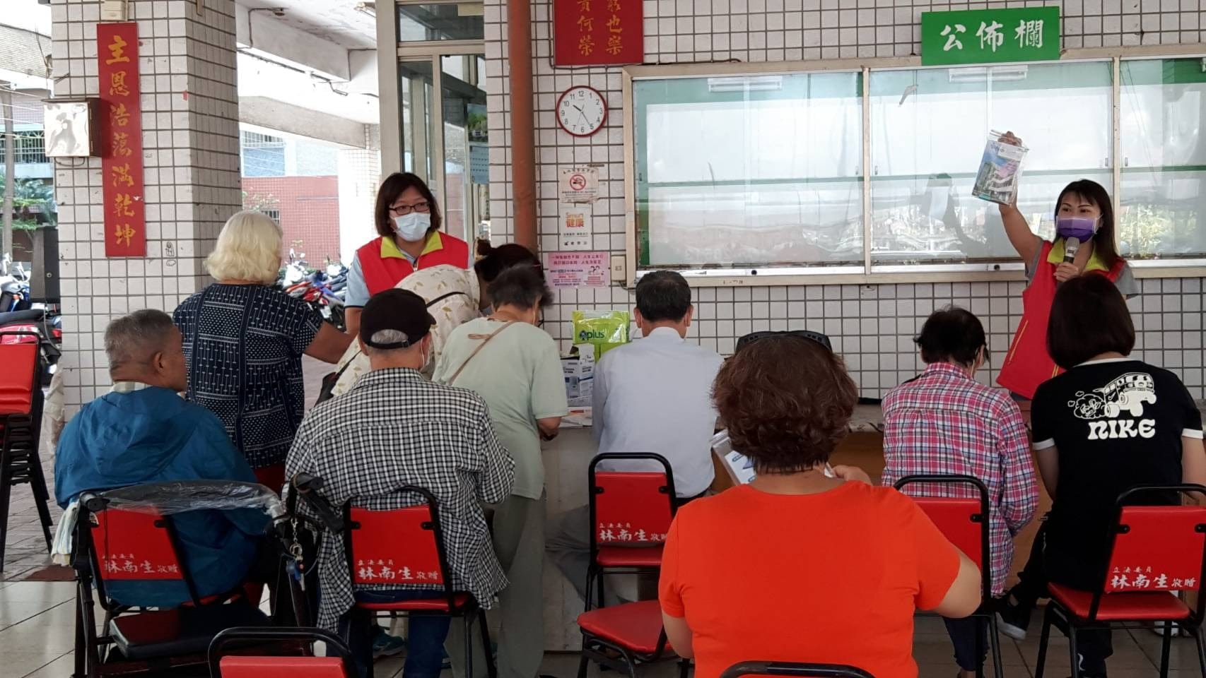110年南區【長者健康促進站】開始囉! 今天在新生里(新生社區發展協會) 學員們相見歡參與前測評估測量血壓運動…