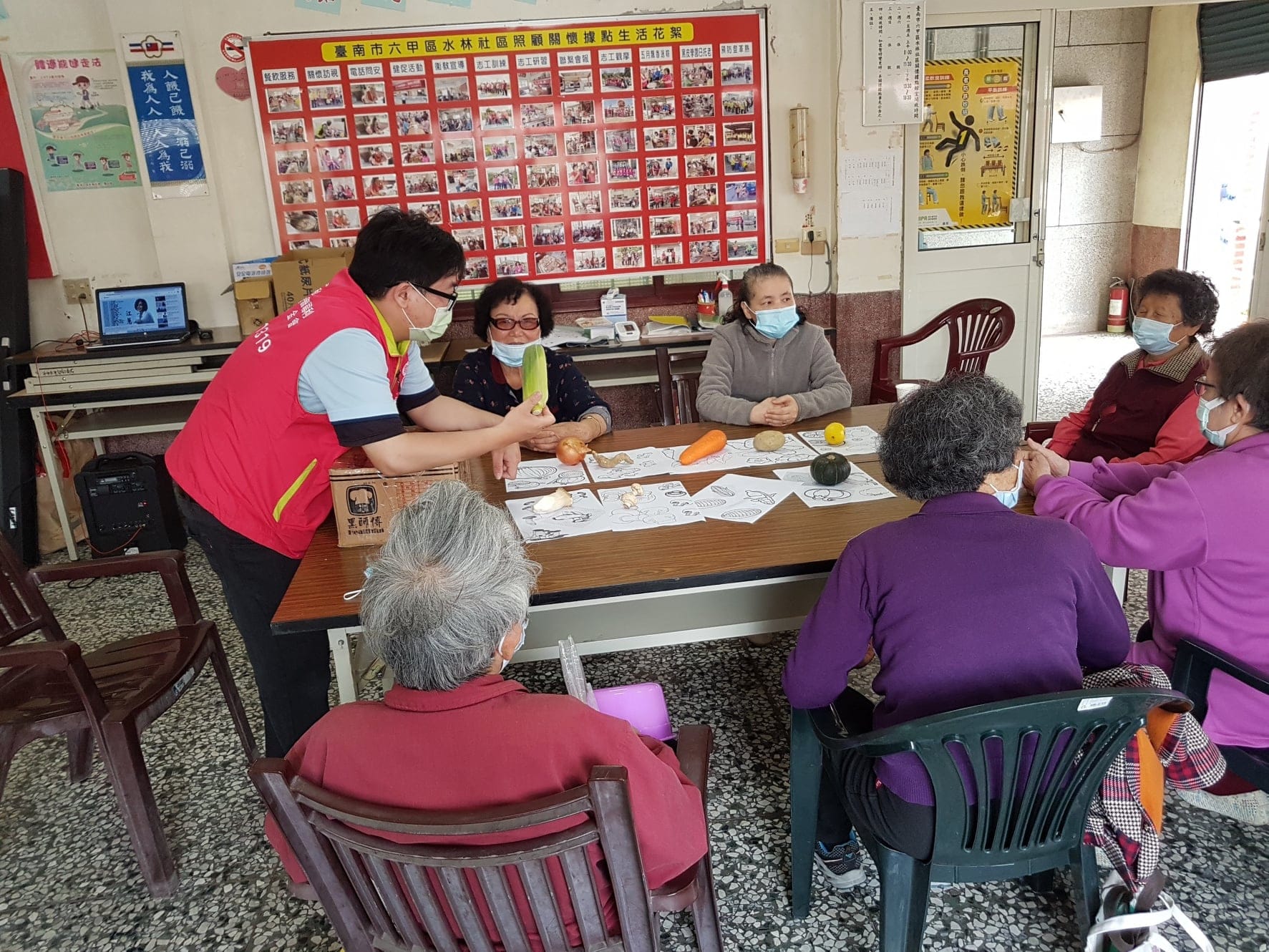 今天藉由蔬果的著色及觸摸做開場🍎🍅🥦🌽🧅 著色圖可以看出長輩對蔬果的印象 而透過暗箱摸彩的方式加強觸覺的刺激 …