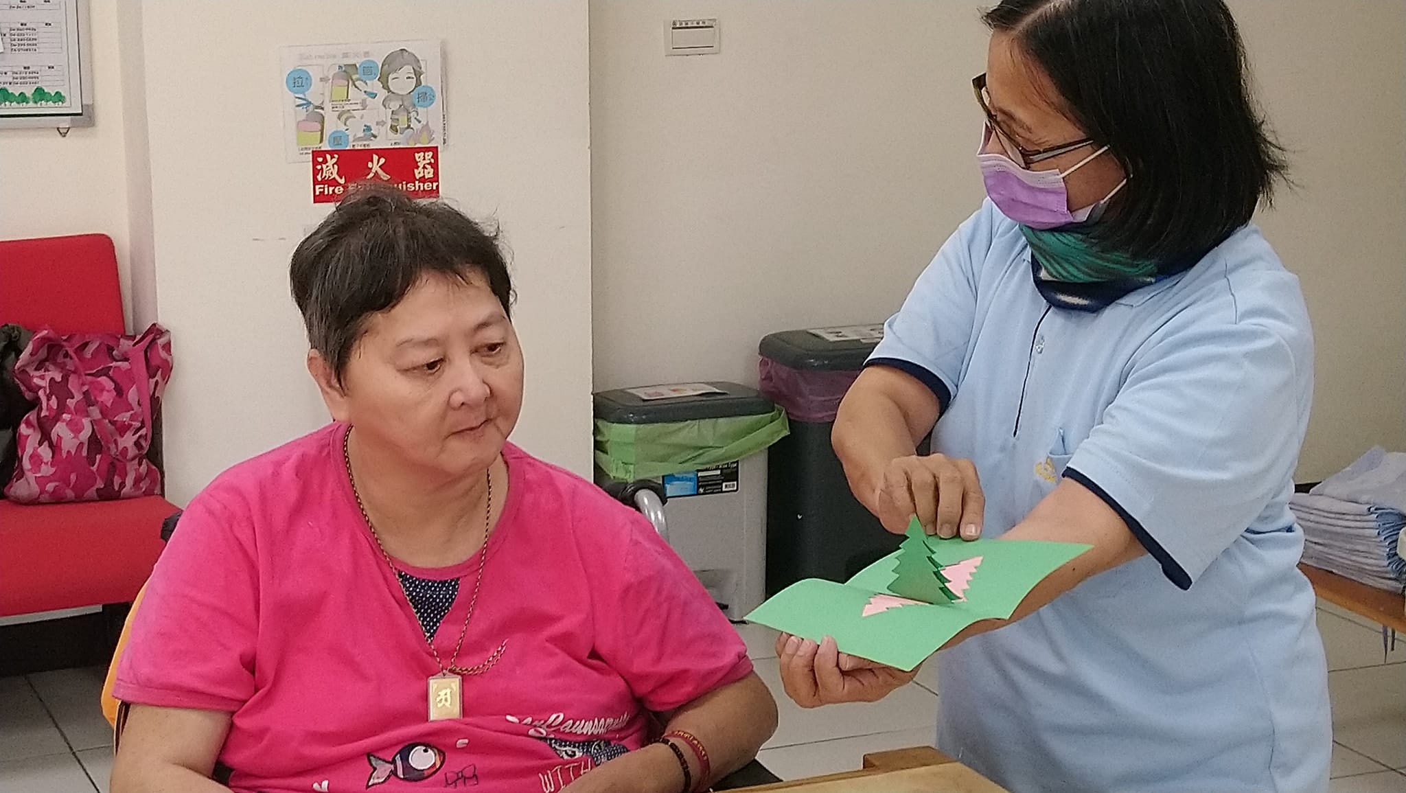 齁齁齁~ 一大早萬年就來了3位聖誕老公公 信望愛的朋友 每年這個時候都會過來表演活動.關心長輩 讓人感覺好溫暖…
