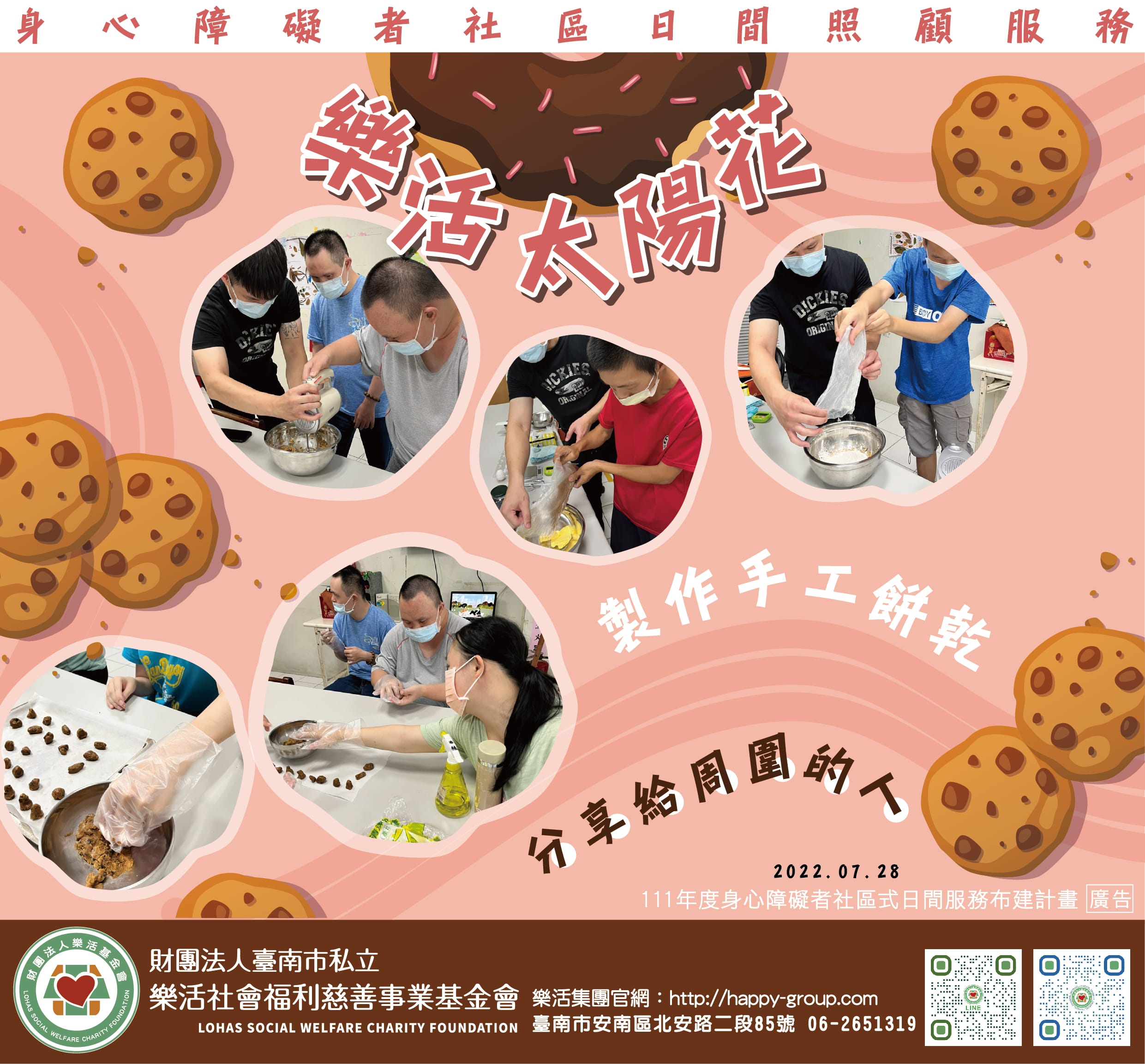 今天感謝阿軒老師帶太陽花的青年們一起製作巧克力餅乾從材料的準備、混合(糖、麵粉、雞蛋及巧克力)到餅乾塑形全部都…