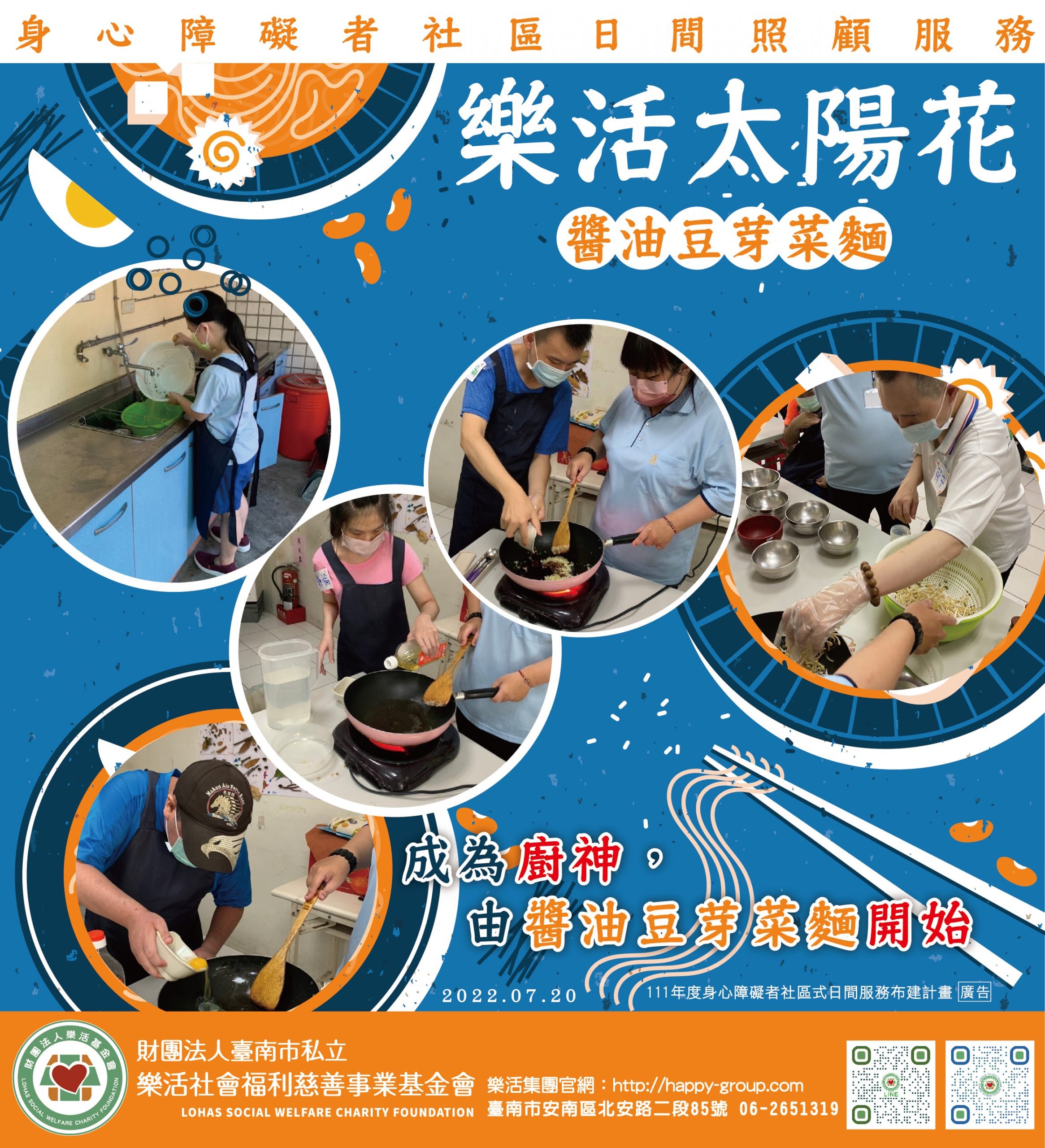 太陽花青年學習製作醬油豆芽菜麵 從炒醬油豆芽菜到將麵條放入到滾水中 全部都是青年們親手完成的 這些廚藝的技巧與…