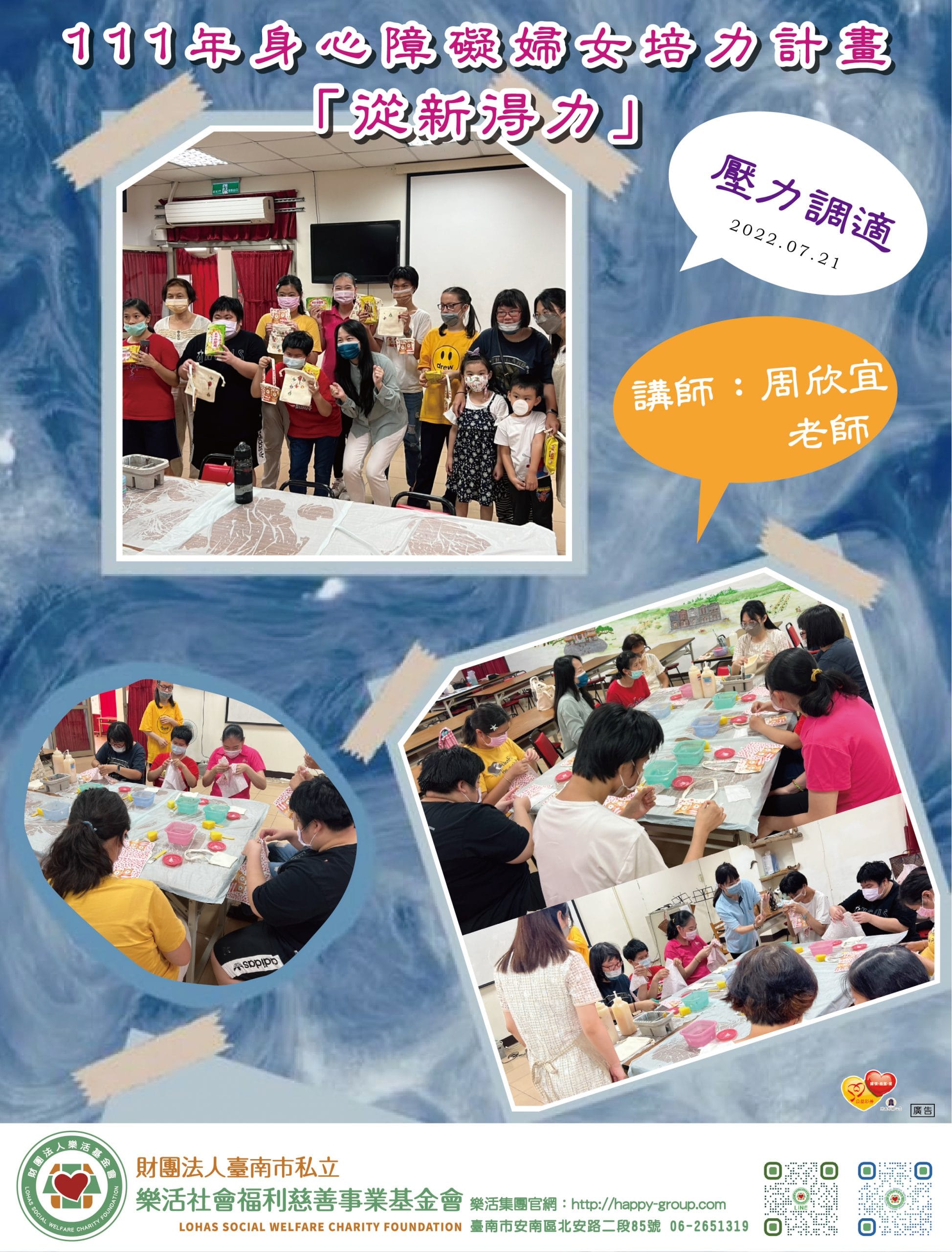 今天是最後一堂課囉 透過不同方式的黏貼 大家今天又收穫了一個獨一無二的飲料提袋呢 樂活集團提供了多種管道 來幫…
