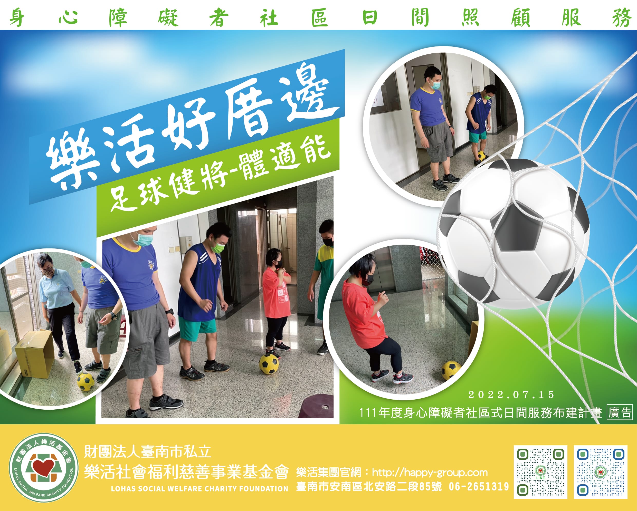 踢足球了一起來追風吧! 樂活好厝邊的專業工作夥伴引導夥伴們 訓練下盤的穩定度 藉由增加障礙物(椅子)來訓練夥伴…