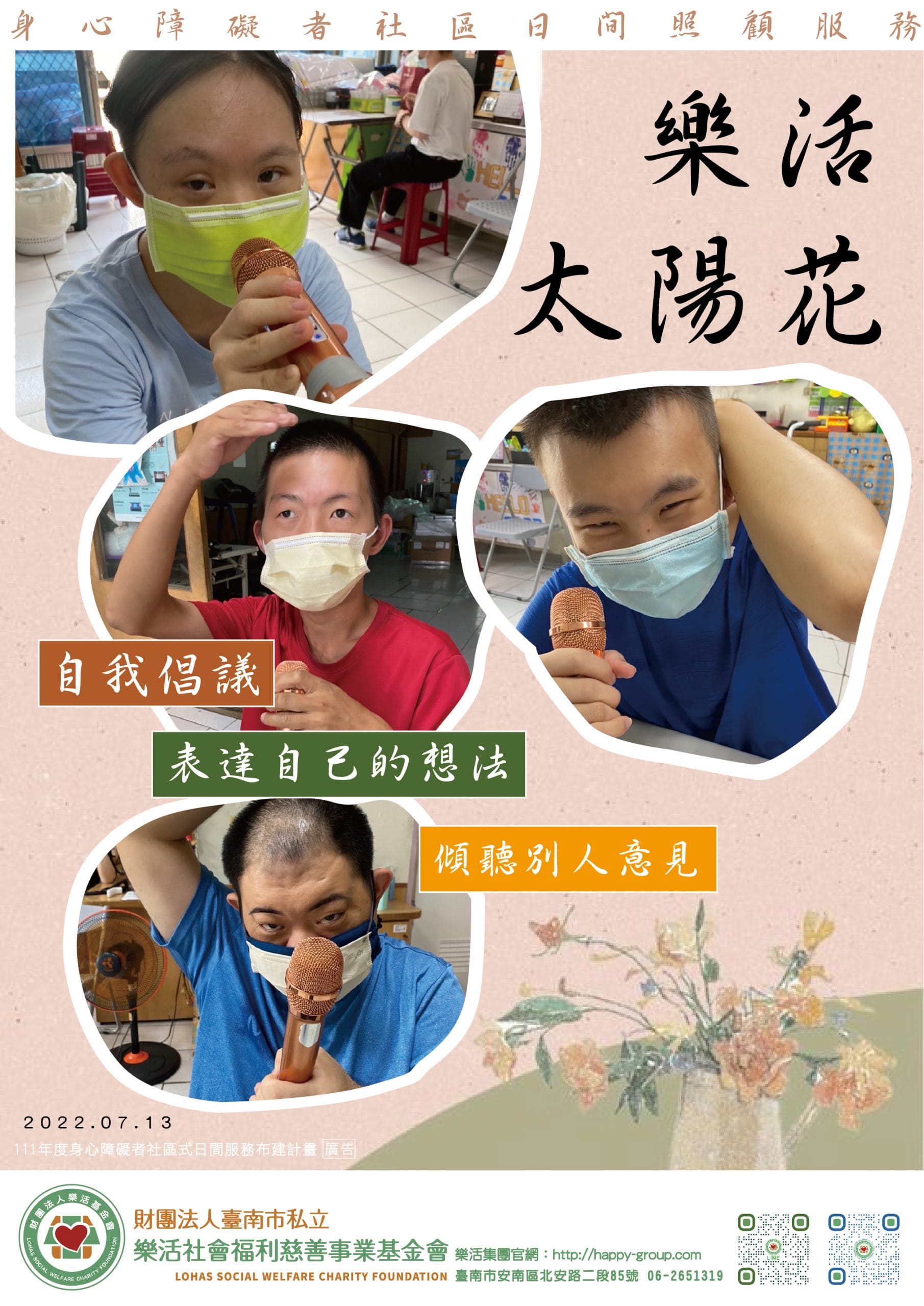 今天太陽花青年進行自我倡議, 鼓勵青年們坦然說出自己的感受與想法, 無論是自己最想做的事、或是自己最喜歡的興趣…