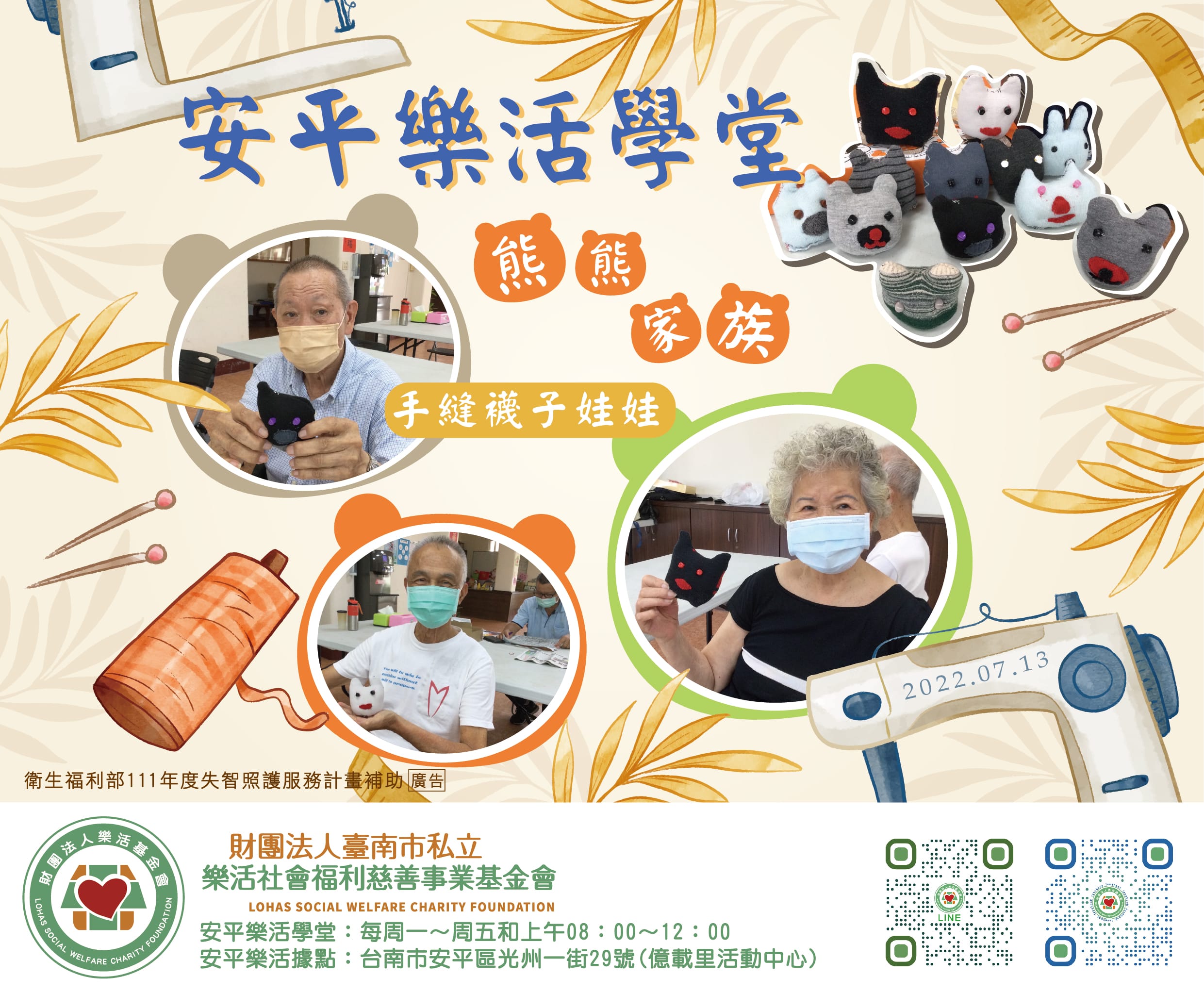 熊熊家族~再縫一個襪子娃娃!! 期待明天活動!! 安平失智據點依COVID-19防疫管理指引 服務人員、服務對…