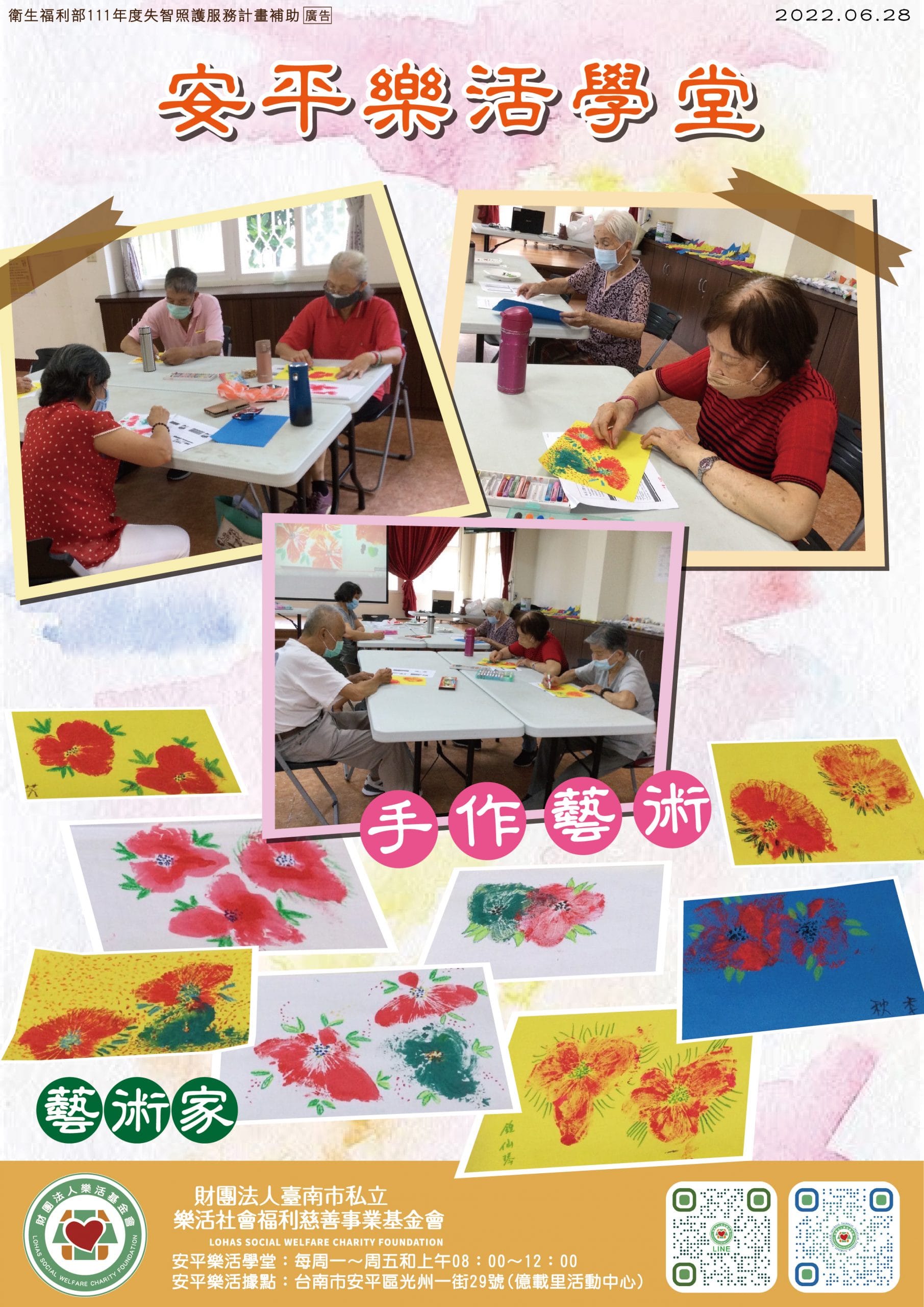 動手玩藝術~越玩越有趣~ 每個都是藝術家!! 安平失智據點依COVID-19防疫管理指引 服務人員、服務對象(…