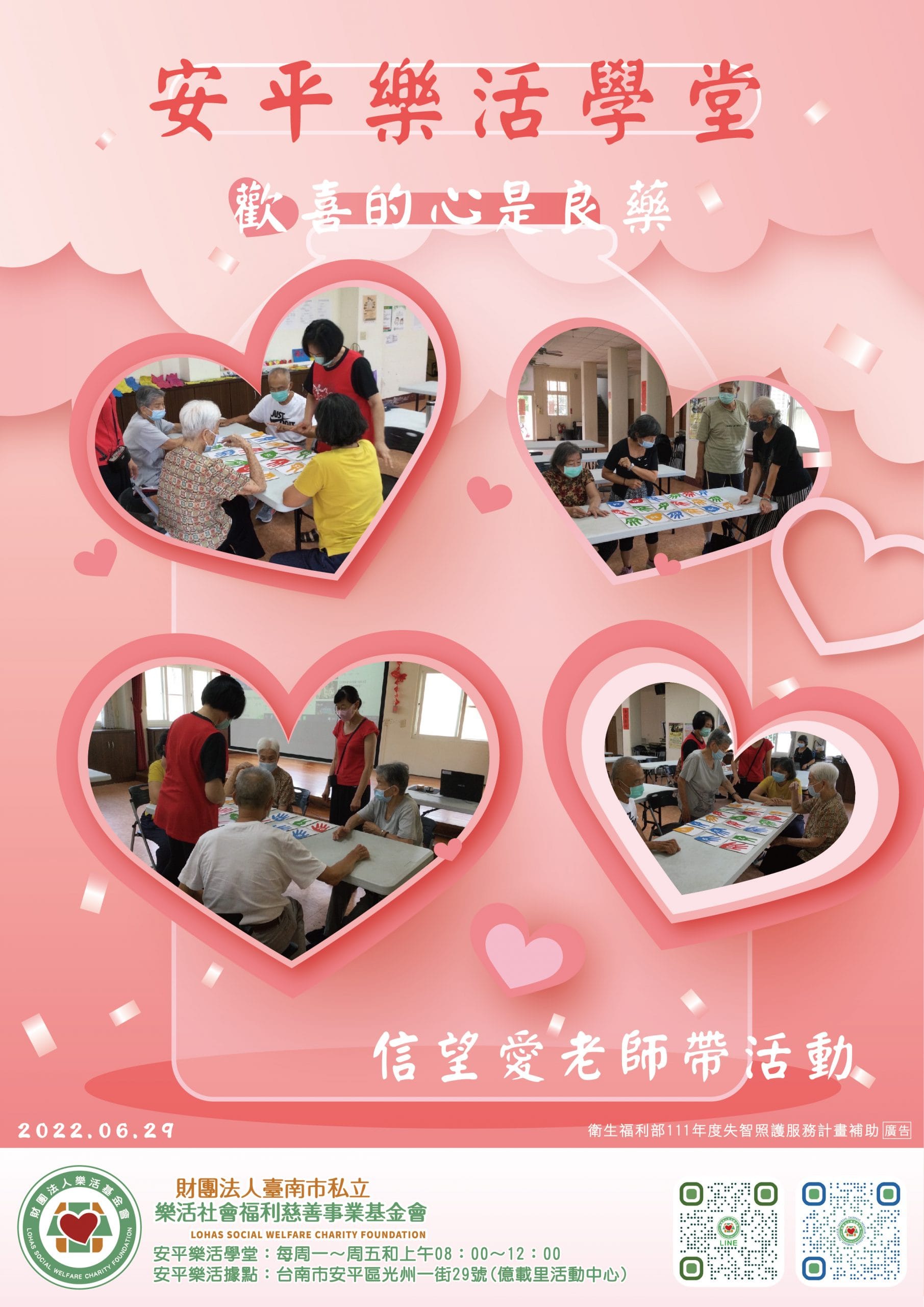 今日由信望愛老師帶活動,大家很開心快樂~ 期待明日活動~~ 安平失智據點依COVID-19防疫管理指引 服務人…