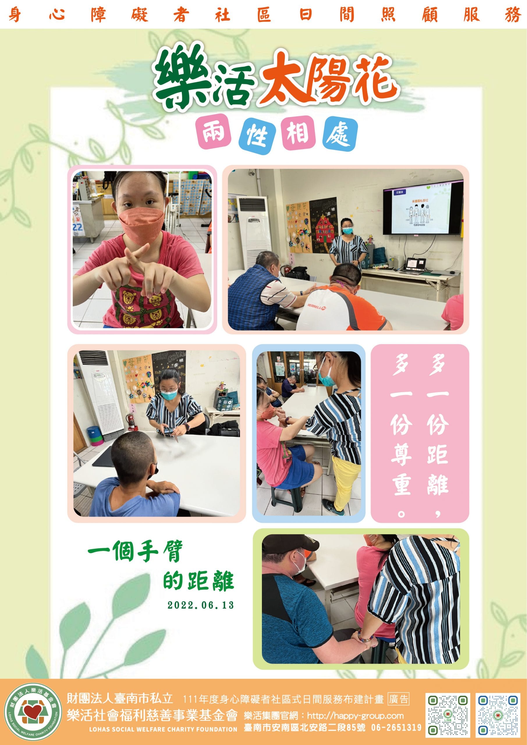 太陽花青年學習兩性之間的相處,每個人都需要一個安全的範圍, 一個手臂的距離,是最剛好的距離。 如果遇到壞人做出…