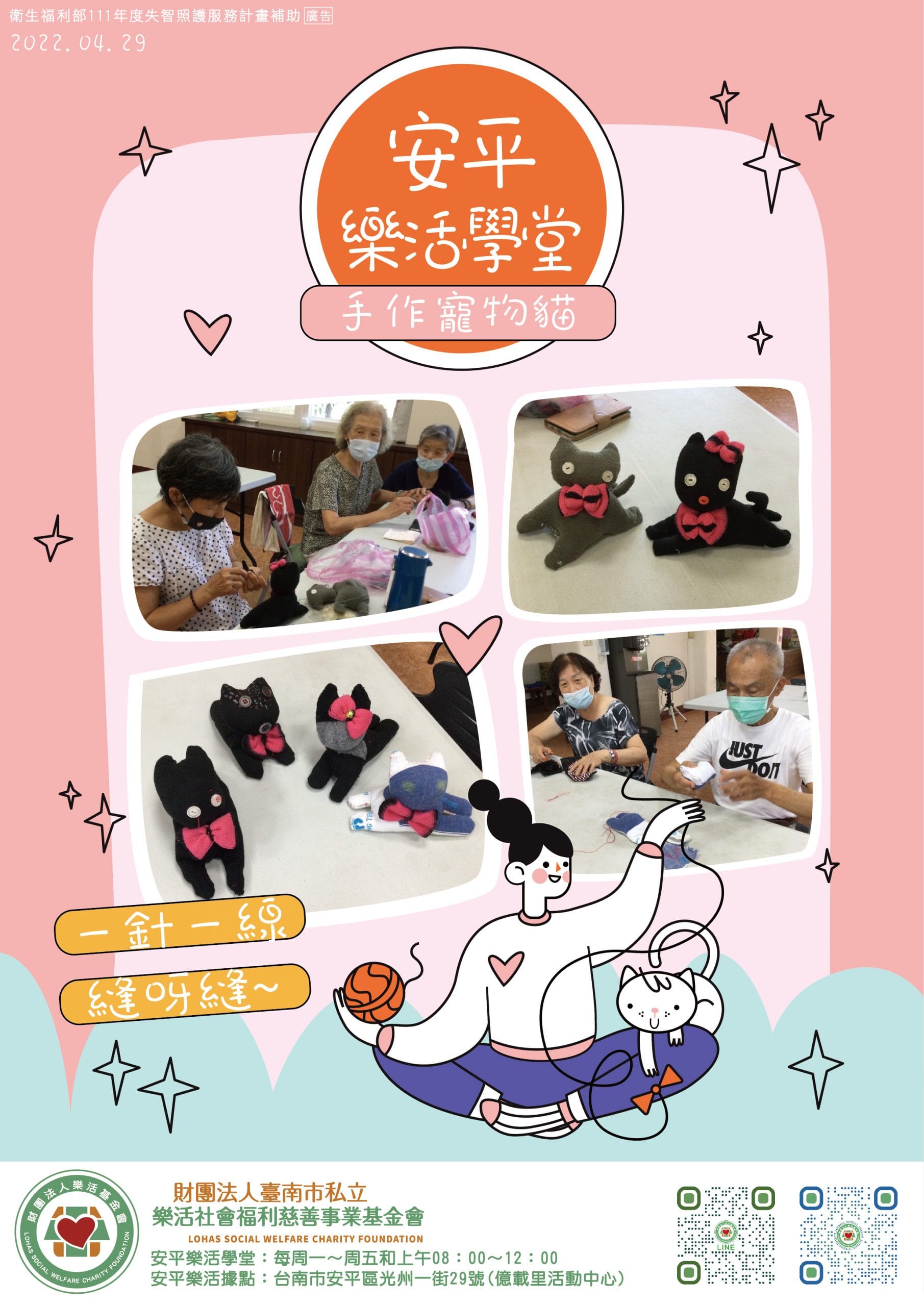 據點長輩花了幾天的時間 一針一線將寵物貓縫製成型 每個人做的都各有特色 做完也非常有成就感 期待下周二的活動 …