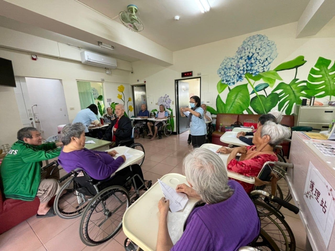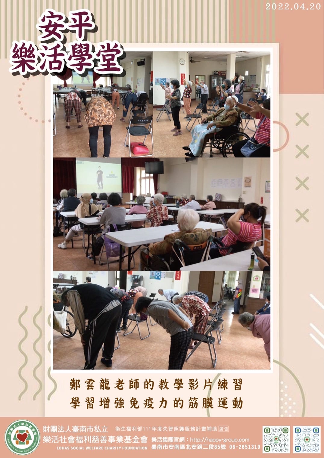 今天是筋膜運動 增加免疫力 期待明天的活動 安平失智據點依COVID-19防疫管理指引 服務人員、服務對象(含…