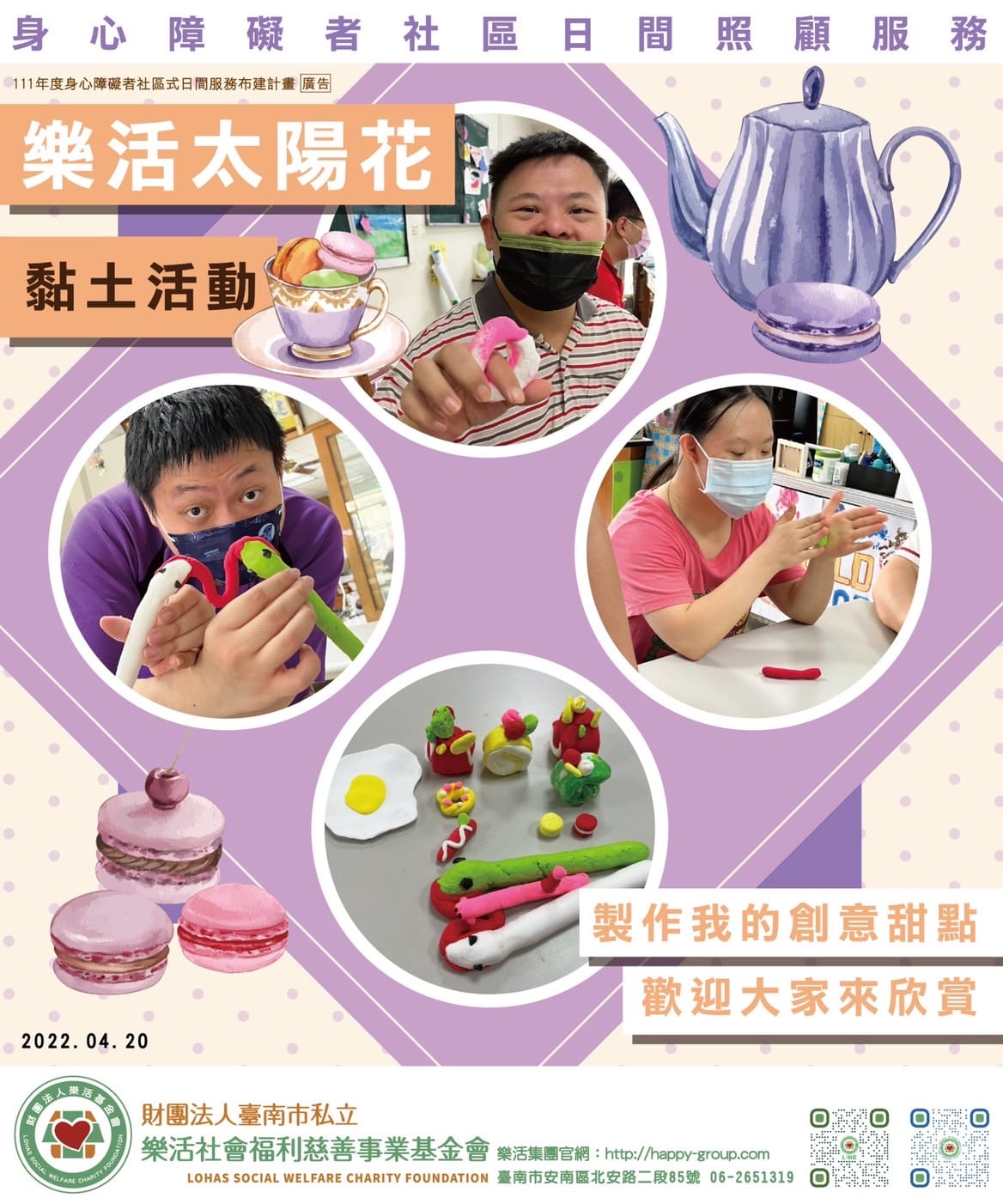 用黏土製做我的創意甜點 太陽花青年發揮自己的創意,製作自己的黏土創意料理 我們的料理菜單有蛋糕捲、甜甜圈、泡芙…