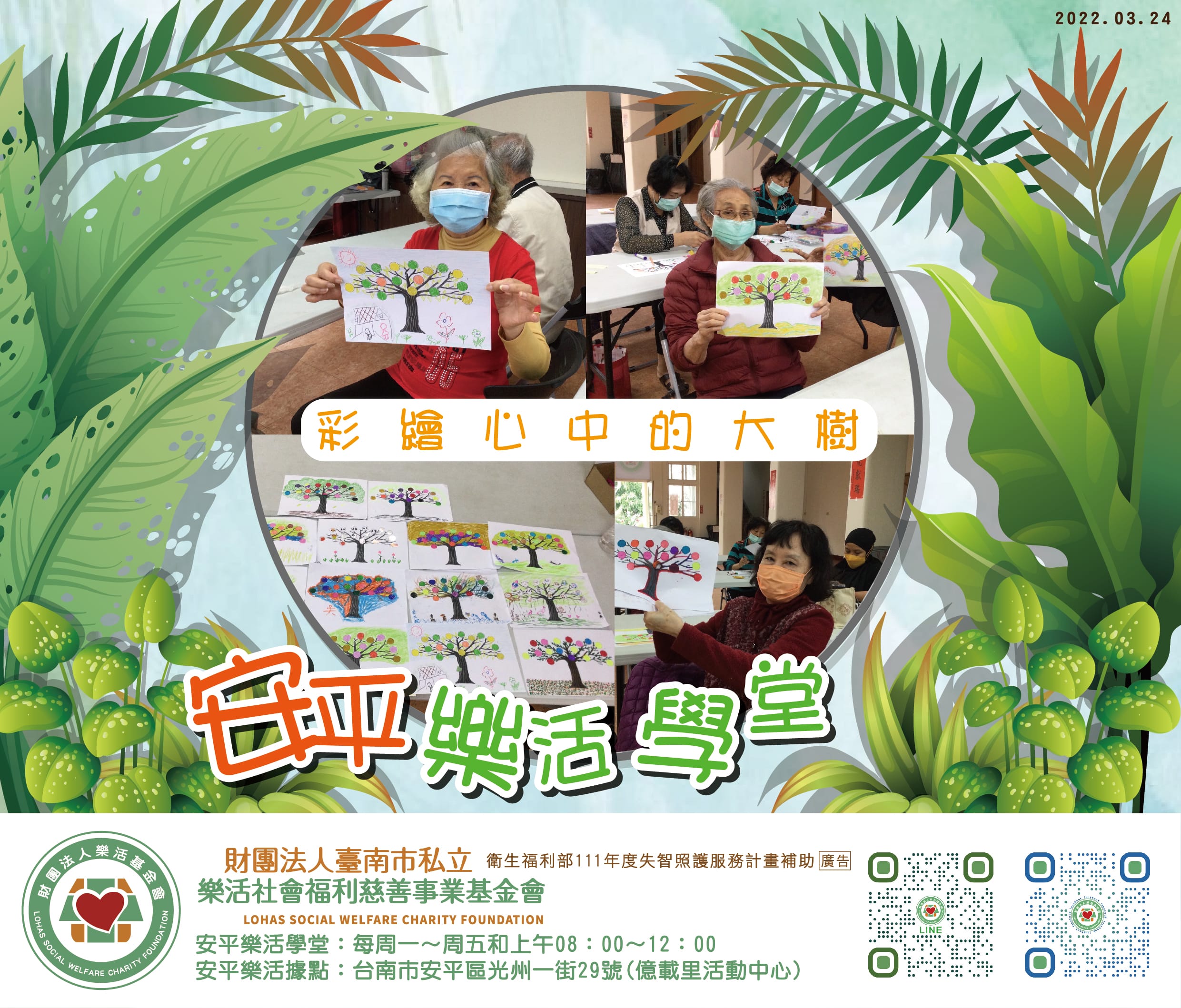 安平樂活學堂的億群好朋友 今天是繪畫課大家彩繪出心中的大樹 每個人的樹都是繽紛的 因為色彩帶來幸福感 期待明天…