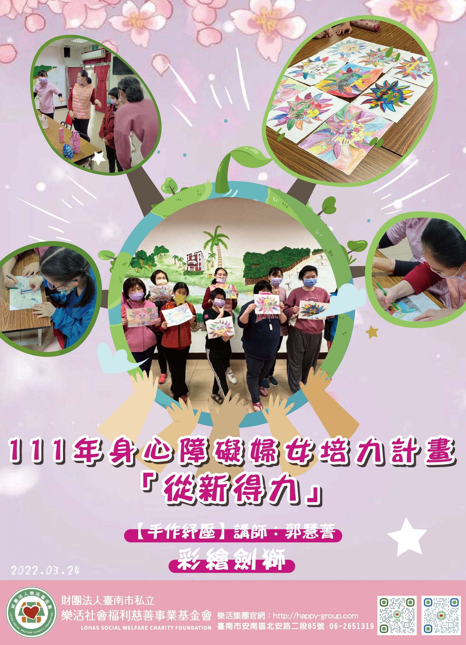 111年度身心障礙婦女培力-從新得力 手作紓壓第二堂課 一開始老師帶大家做幻想伸展操 大家都好開心 動態的活動…