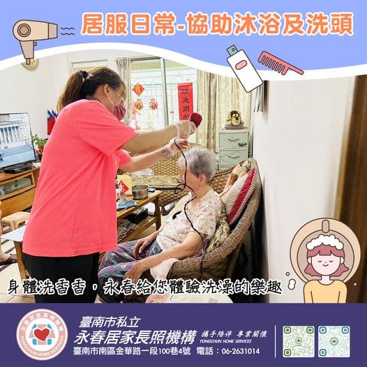 居服日常-沐浴及洗頭 許多人因為肢體退化無法自己沐浴洗頭 而需要他人協助沐浴,家屬沒有辦協協助時怎麼辦? 沒關…