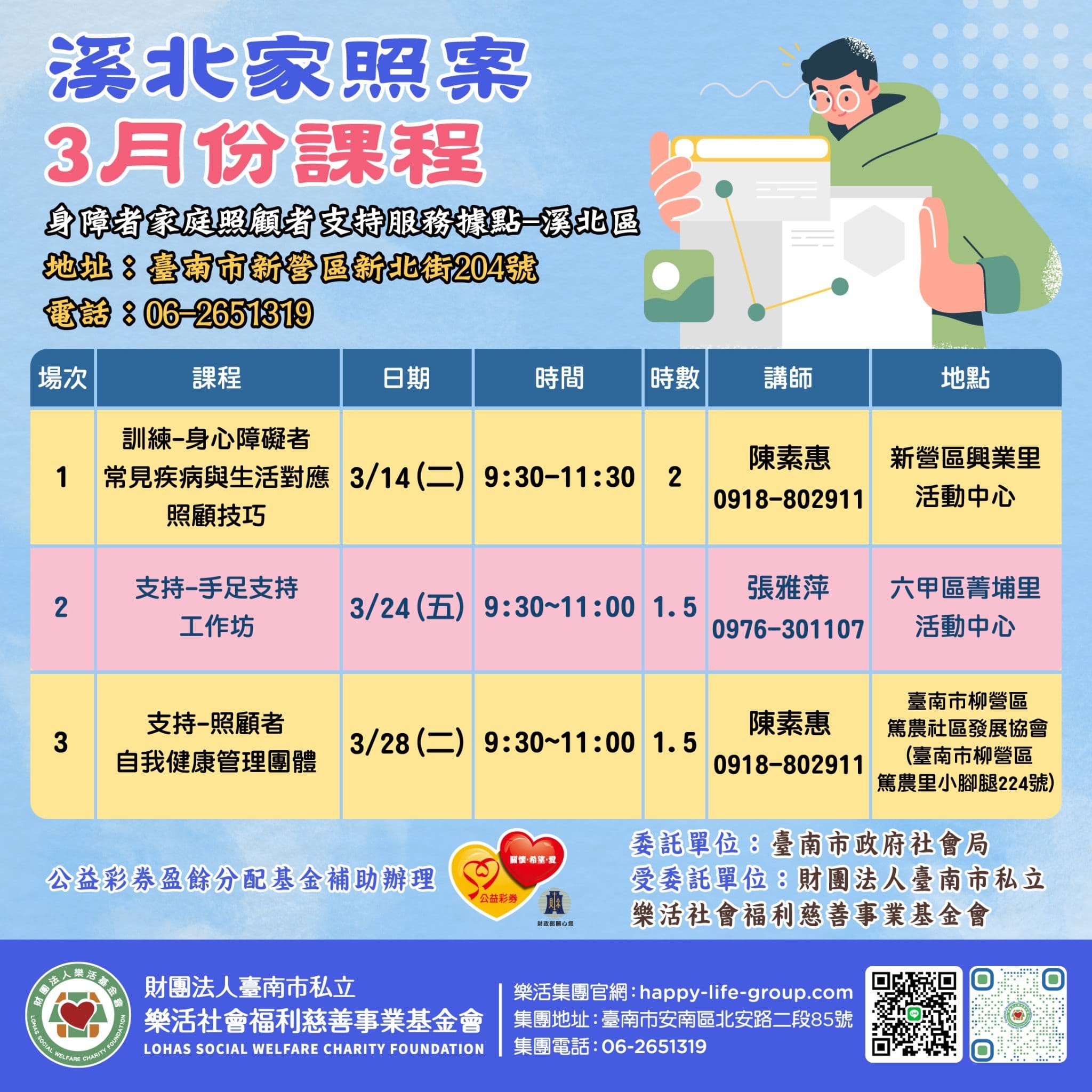 112年度身心障礙者家庭照顧者支持服務-溪北區 3月活動表開工啦開工啦,這次有多少好朋友…