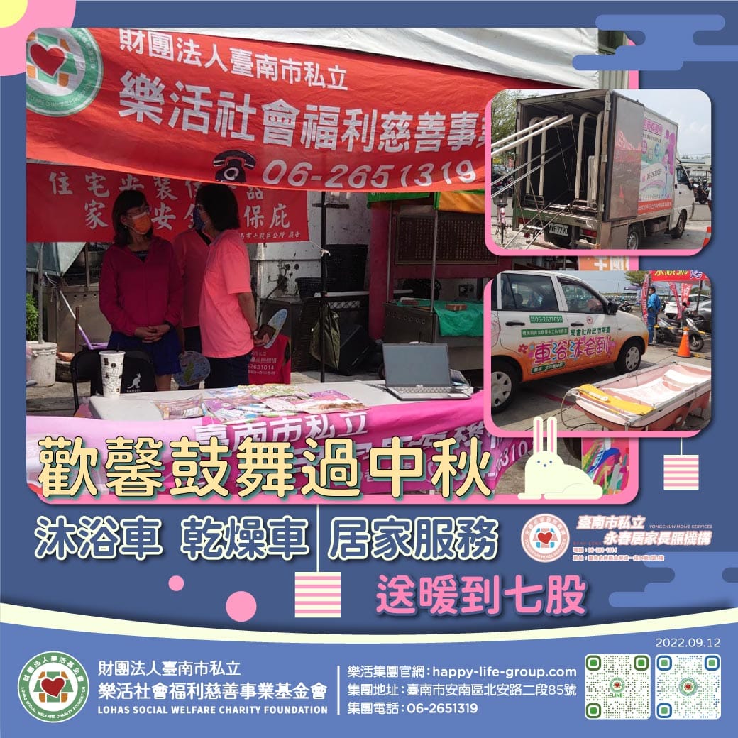 臺南市七股區公所辦理歡欣鼓舞迎中秋關懷弱勢活動,永春居家長照機構與樂活基金會攜手共襄盛舉,推廣長照2.0業務。…