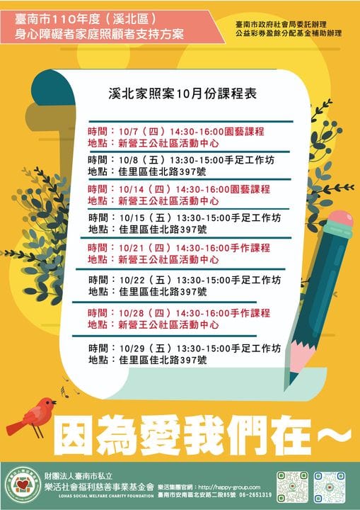 照過來照過來 大家期待的溪北家照案10月課程表熱騰騰的出爐了 這次除了有放鬆身心靈的園藝課程與創意十足的手作課…