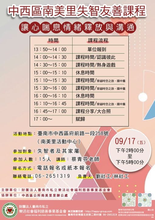 號外號外 眠啊在09/17(五)ㄟ撥14:00-17:00 在南美里活動中心 讓心喘息-情緒釋放與疏通 由我們…